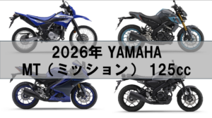 2026年 YAMAHA MT(ミッション)シリーズバイク125cc 紹介 2026年YAMAHAからは MT-125 YZF-R125 XSR125 WR125R 4台の原付MT車が販売されています。 今回はそれら4台の紹介と比較をしたいと思います。 MT-125 ストリート向けネ…