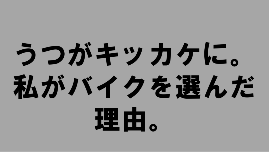 うつがキッカケに。私がバイクを選んだ理由。
